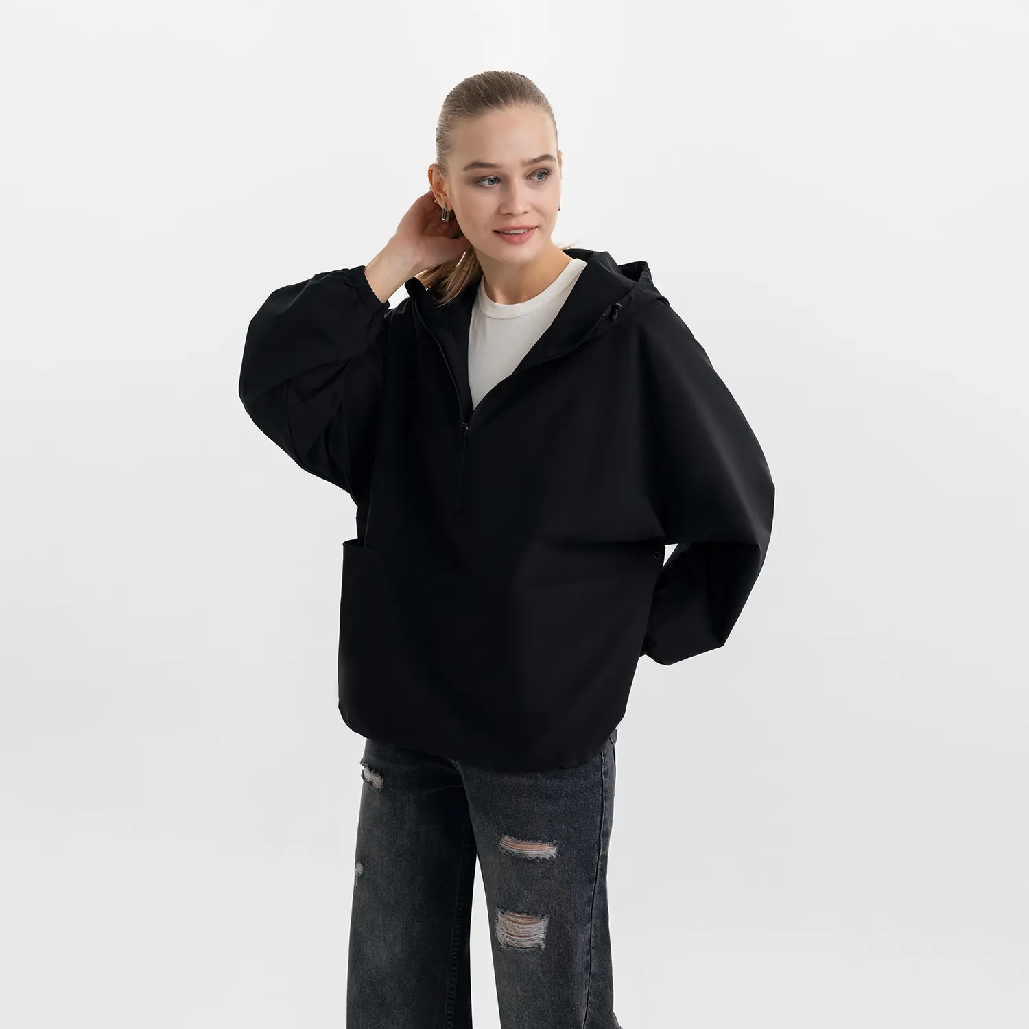 Ветровка (анорак) оверсайз унисекс RISSMAN, черная, размер M/L