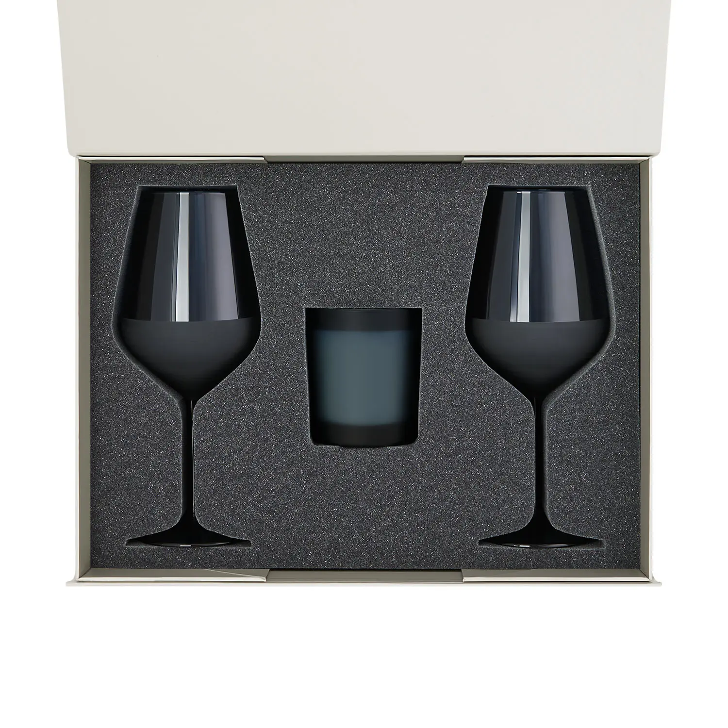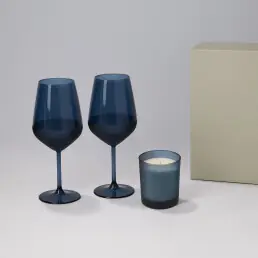 Подарочный набор свеча Enigma + 2 бокала для вина Sapphire в серой коробке