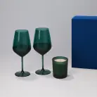 Подарочный набор свеча Enigma + 2 бокала для вина Emerald в синей коробке