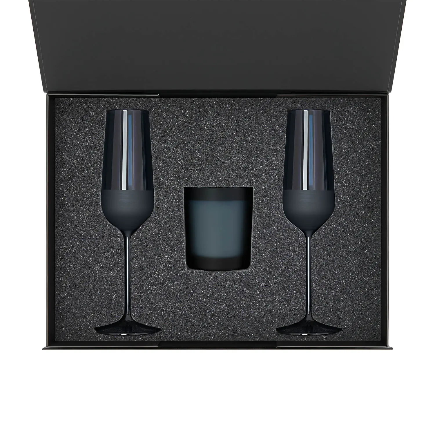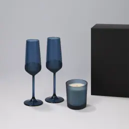 Подарочный набор свеча Enigma + 2 бокала для шампанского Sapphire в черной коробке