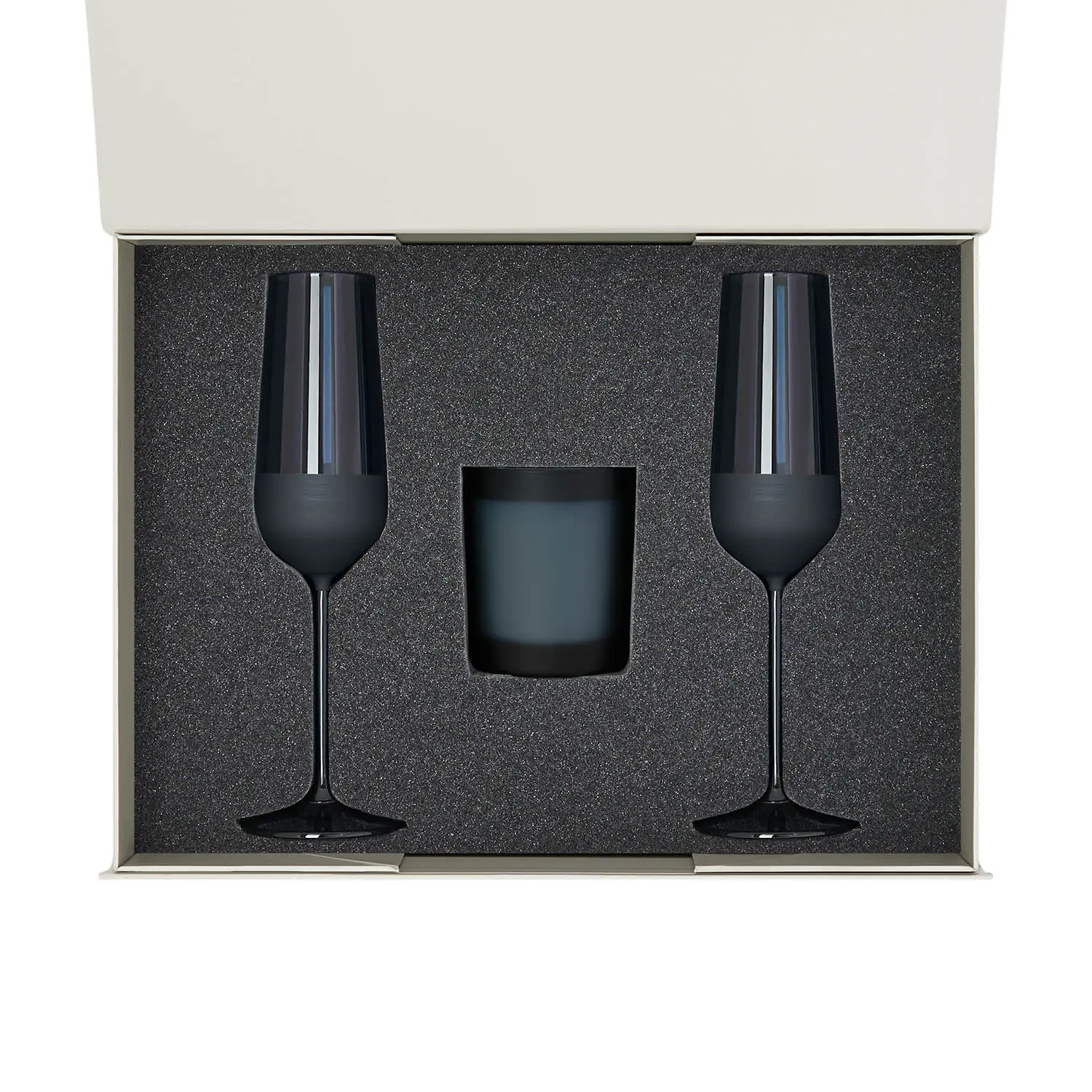 Подарочный набор свеча Enigma + 2 бокала для шампанского Sapphire в серой коробке