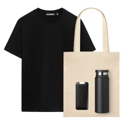 Набор с одеждой KRIS (футболка, аккумулятор, термобутылка, шоппер), черный, L