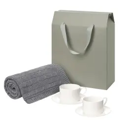 Подарочный набор Mokko, Fado, серый в коробке-пакете (две чайных пары, плед)