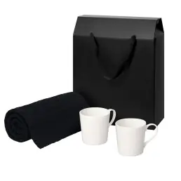 Подарочный набор Siena, Fado, темно-синий в черной коробке-пакете (две фарфоровых кружки, плед)