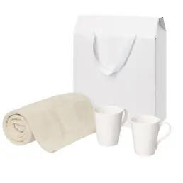 Подарочный набор Vesta, Cella, бежевый в коробке-пакете (две фарфоровых кружки, плед)