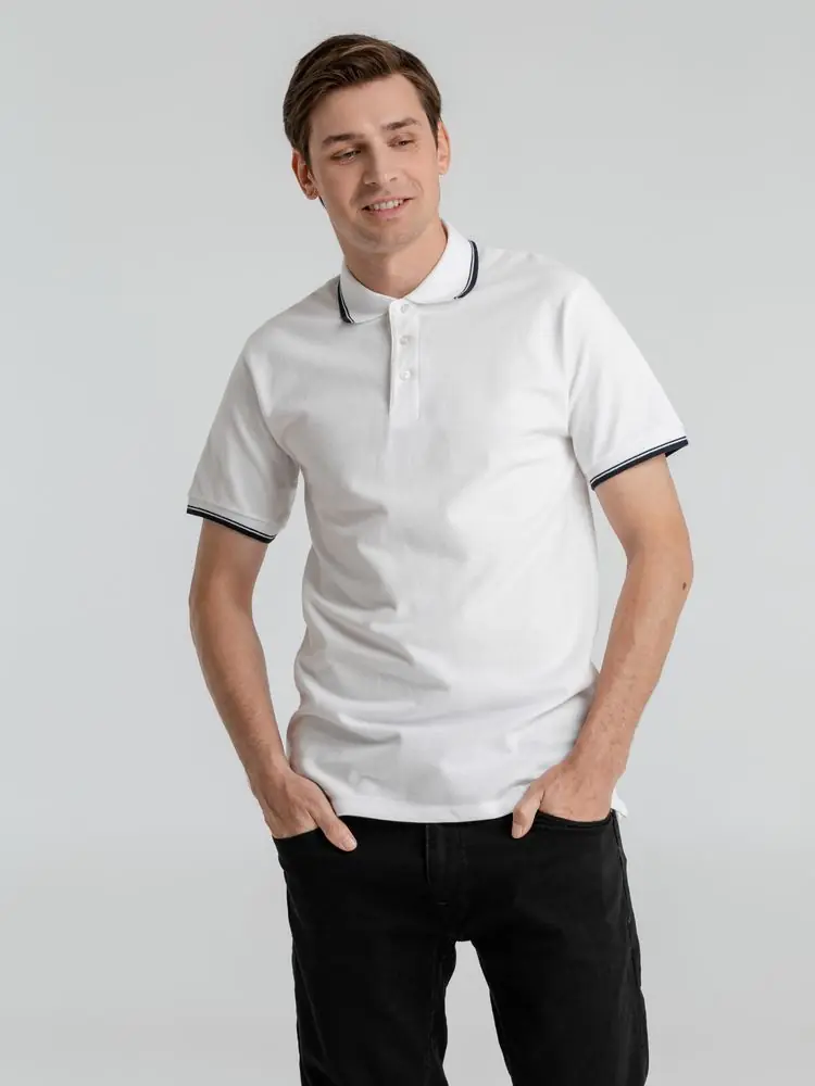 Рубашка поло мужская с контрастной отделкой Practice 270, белый/темно-синий, размер XXL