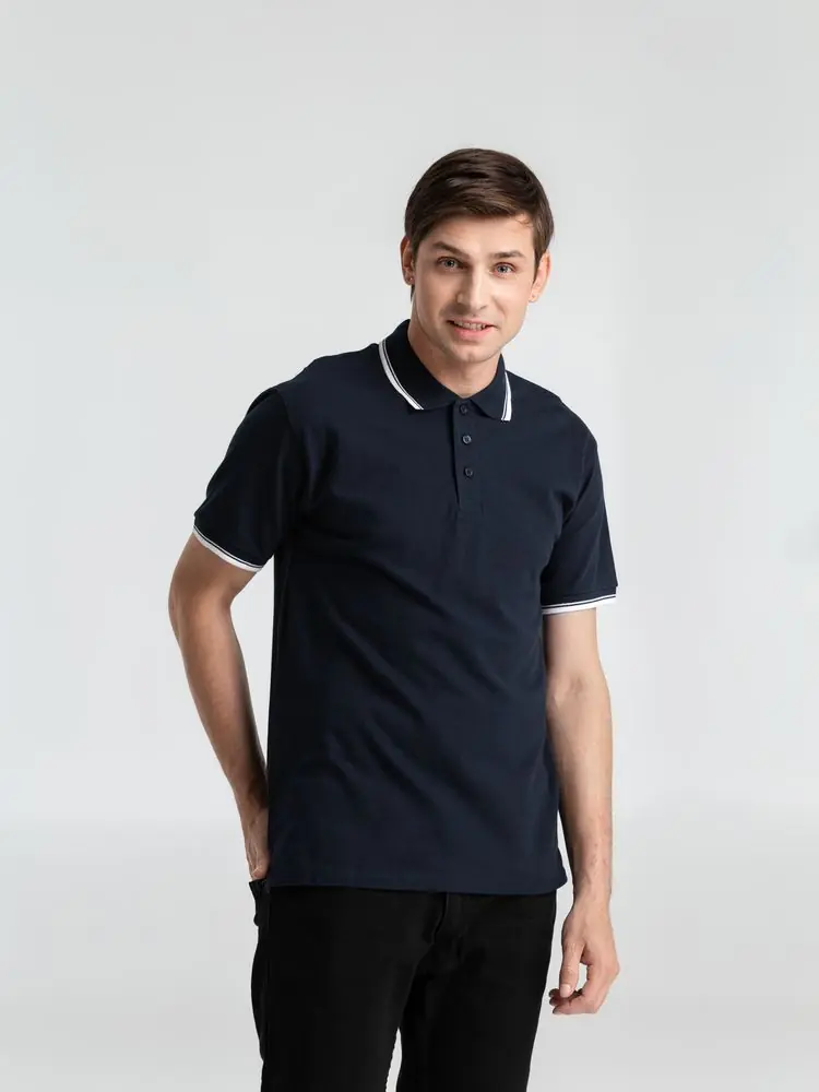 Рубашка поло мужская с контрастной отделкой Practice 270, темно-синий/белый, размер XL