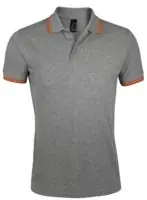 Рубашка поло мужская Pasadena Men 200 с контрастной отделкой, серый меланж/оранжевый, размер M