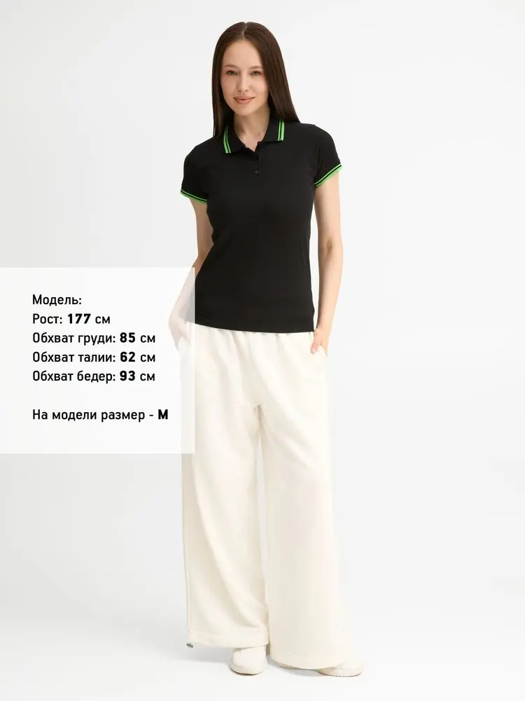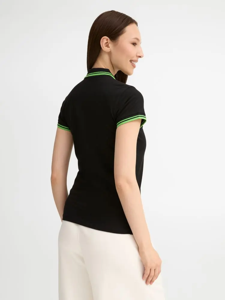 Рубашка поло женская Pasadena Women 200 с контрастной отделкой, черный/зеленый, размер XL