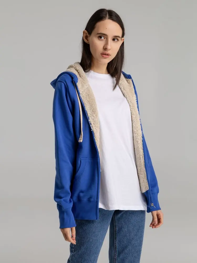 Толстовка унисекс на молнии Sherpa 280 ярко-синяя, размер XS