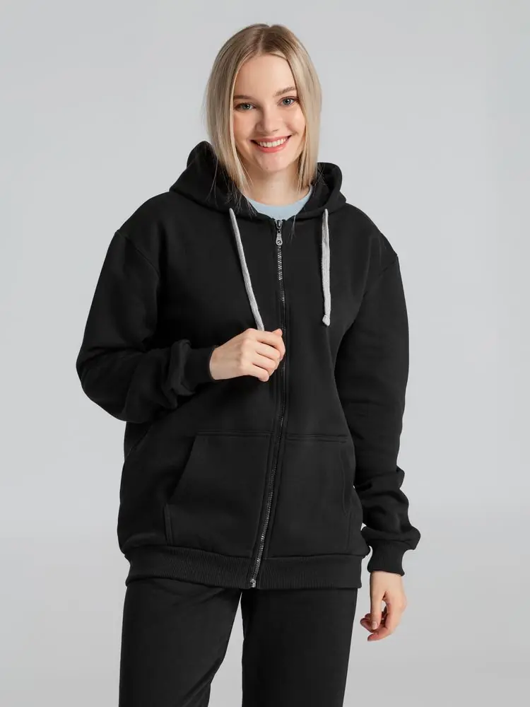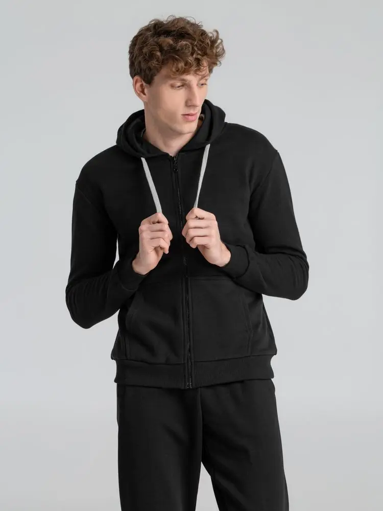 Толстовка на молнии с капюшоном Unit Siverga Heavy черная, размер S
