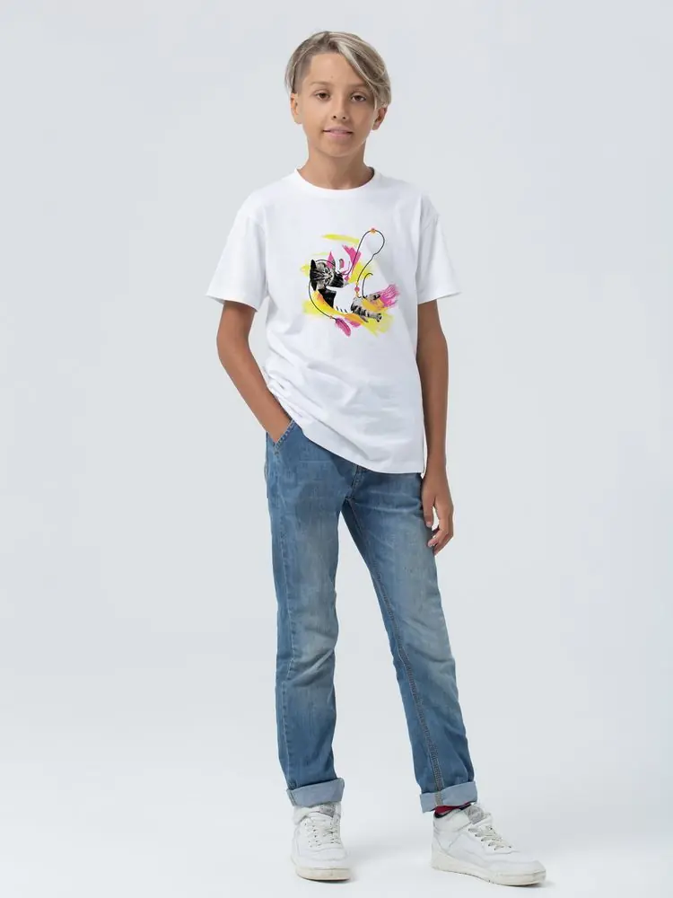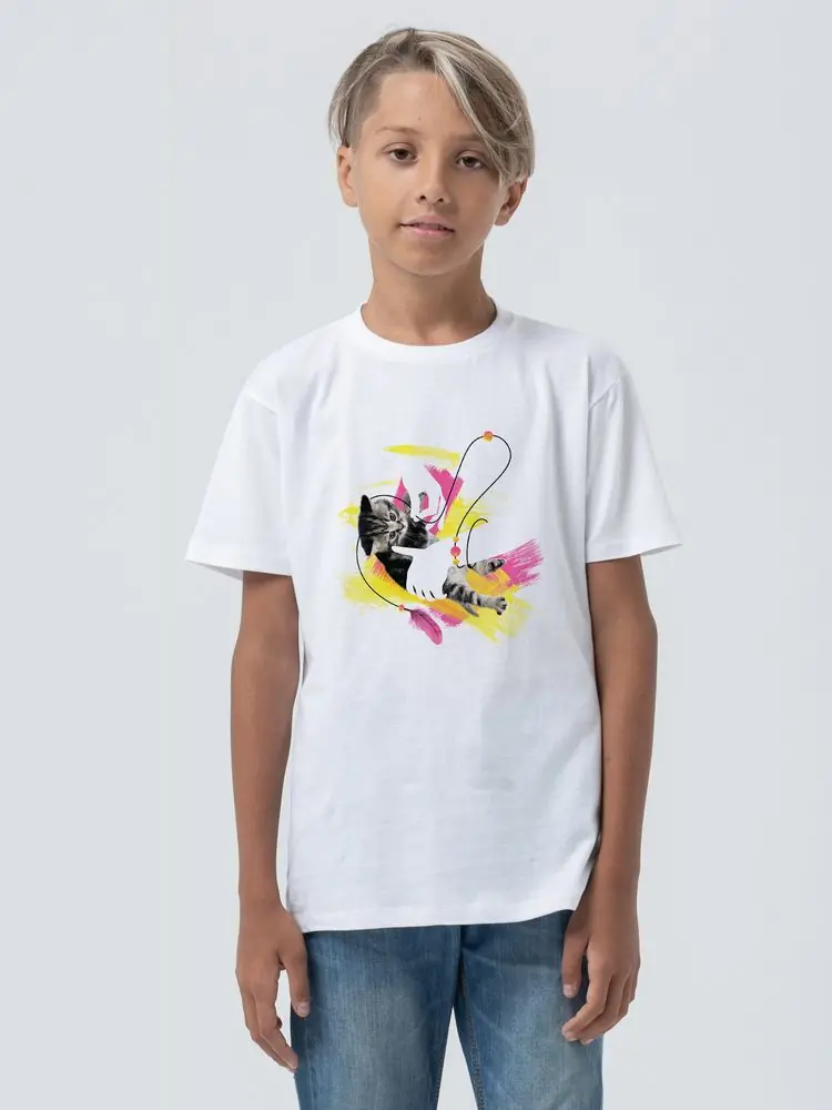 Футболка детская «Обними кота», белая