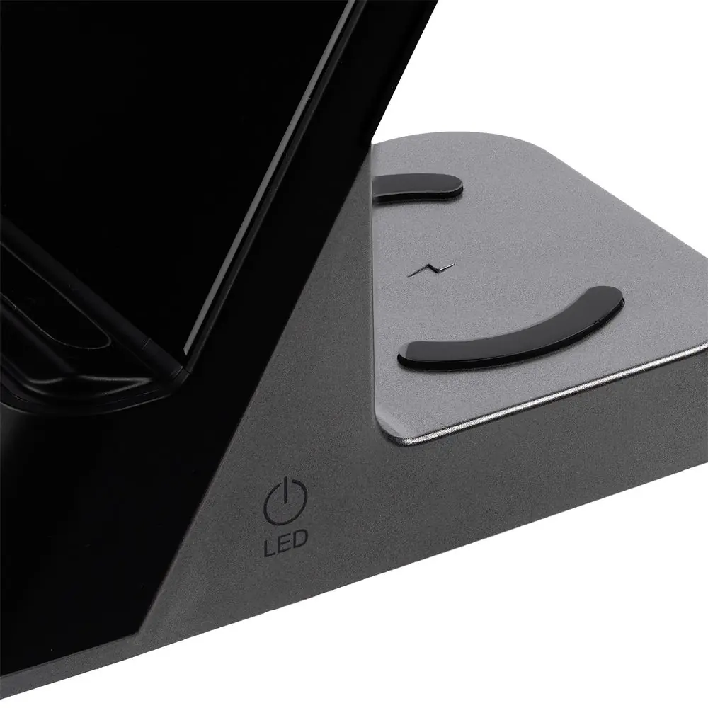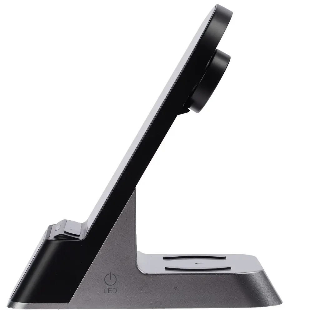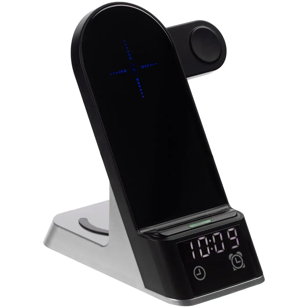 Зарядная станция с часами E-Store для смартфона, часов и наушников, черная