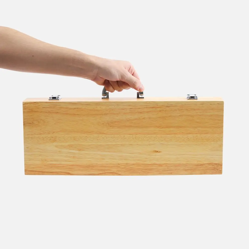 - Материал нержавеющая сталь, пищевая, коррозионностойкая; ручка - покрытие софт-тач; кейс - дерево