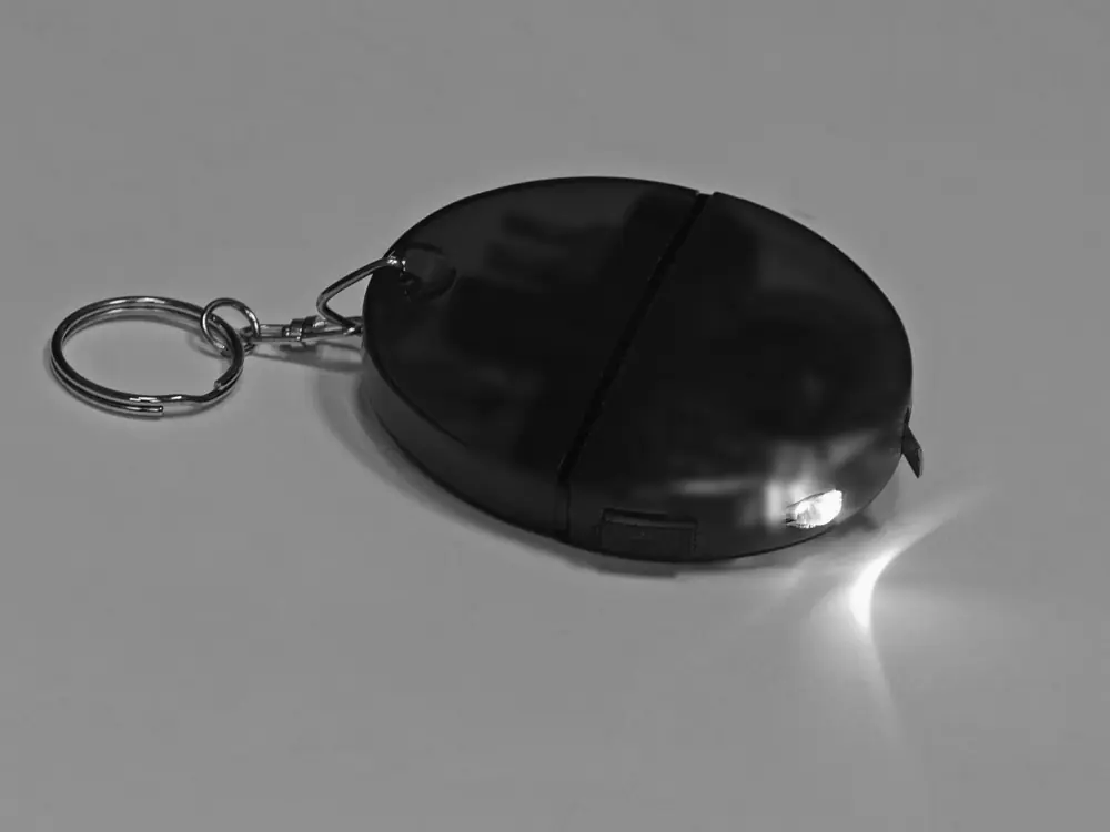 Брелок-рулетка с набором отверток и фонариком, серый