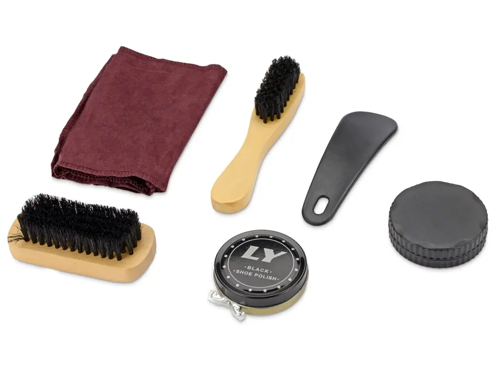 - Комплектность черный крем, бесцветный крем, 2 щетки, ложка для обуви, салфетка
