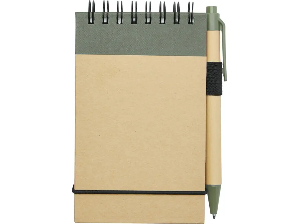 Блокнот А7 Zuse с ручкой шариковой, зеленый яркий