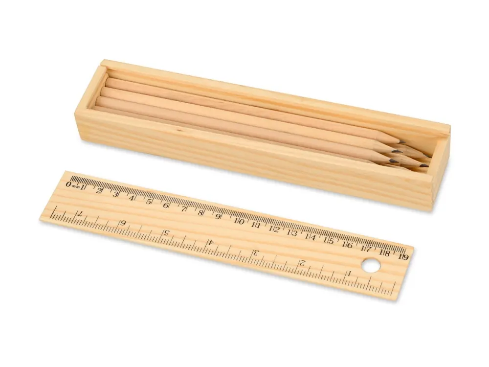 Набор из 8 карандашей в пенале с линейкой