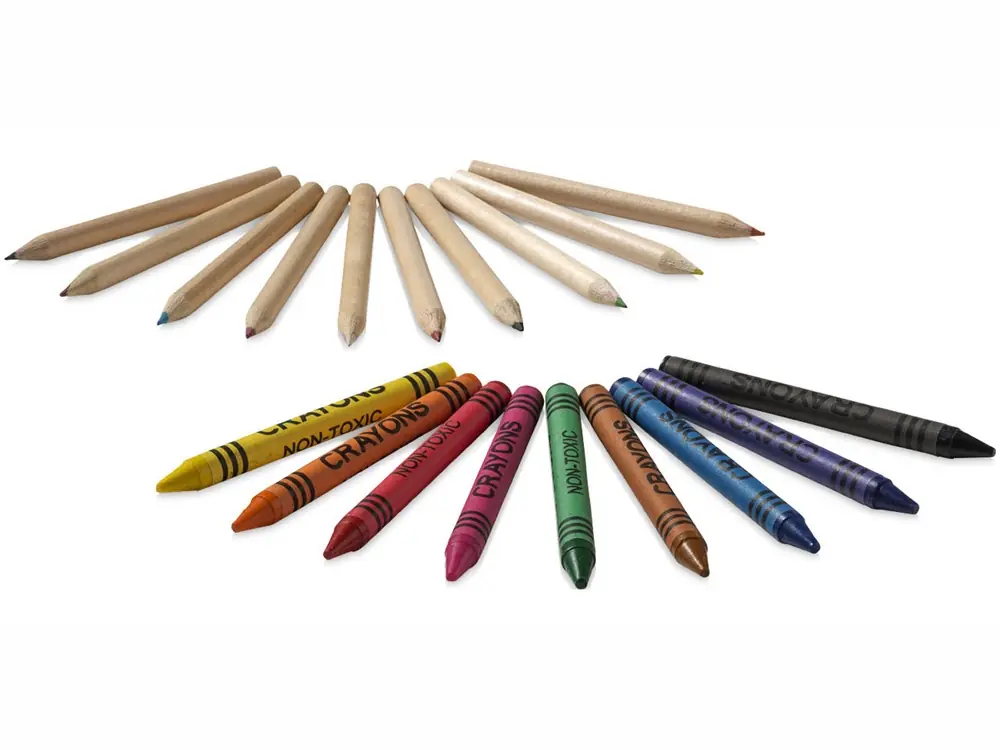 - Комплектность цветные восковые карандаши - 9шт, цветные карандаши - 10шт